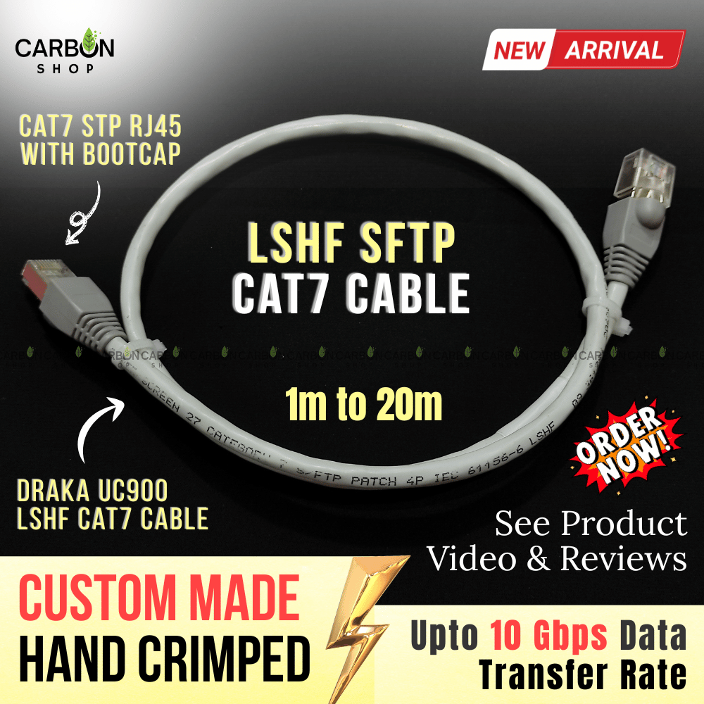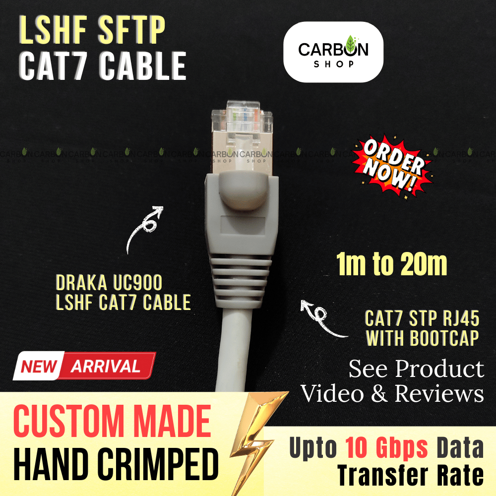 The Cat7 S/FTP 27AWG CCA Shielded Cable from Carbon Shop BD is engineered for users who require a faster, more stable, and interference-free networking solution. Designed to support up to 10 Gigabit Ethernet (10G) and 600 MHz bandwidth, this cable outperforms traditional Cat6 cables, ensuring superior signal quality for demanding applications like 4K streaming, heavy online gaming, large file transfers, CCTV NVR setups, and modern office LAN environments.